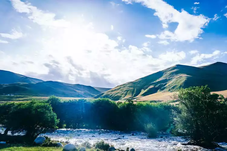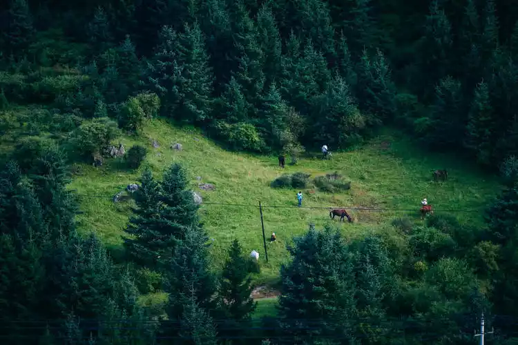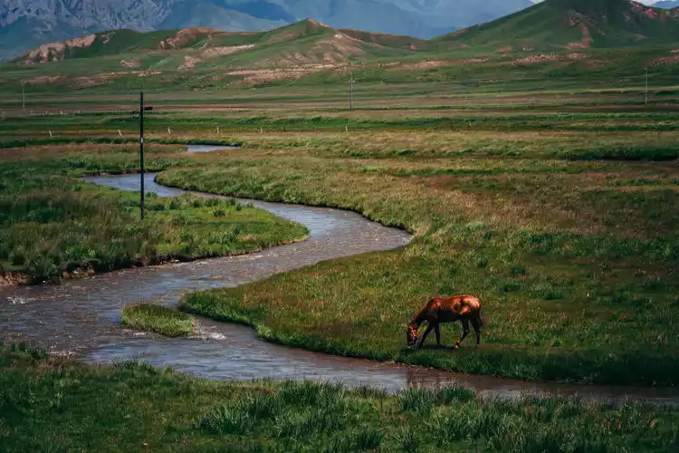 Don't rush to get off the bus when you pass the Sangke Grassland Viewpoint. Continue walking. There's a boarding school and a large open space nearby. Don't hesitate to drive up. There are fewer people here, and the scenery remains the same Sangke Grassland, but the difference is that there's a lake hidden here. Follow the path further in, and you'll find a vast expanse of knee-deep grassland, within which lies a clear lake and a river flowing out. The lake is full of ducks, and cattle graze by the lakeside. Mountains are in the distance, and grasslands lie nearby.