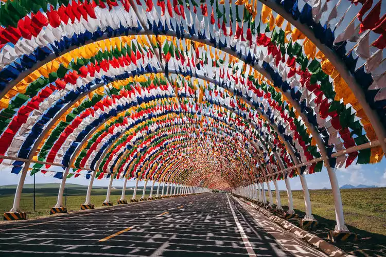 Meiren Grassland is a magical wonder among the Gannan grasslands. The grass here isn't grass at all, but rather tiny grass bags. The entire grassland is covered in these small bags, creating a truly adorable scene. There's also a 300-meter-long prayer flag tunnel, which is truly spectacular. Most importantly, each service area here offers a stunning viewing platform, complete with clean restrooms and running water—a truly touching sight in Gannan, where running water is scarce.