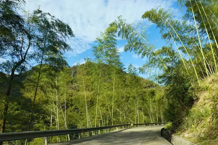 The hotel is very close to Lijiakeng Village where I wanted to go. Lijiakeng is only one kilometer away from Danshan Chishui Scenic Area. On the way, I passed the sign for Danshan Chishui Scenic Area. There were small roads all the way. I thought the scenery on the small roads was much better than that on the main road. The bamboo on the outside and the other plants on the inside that go up the mountain "meet" at the highest point, like a natural parasol, so you won't be bored while driving.