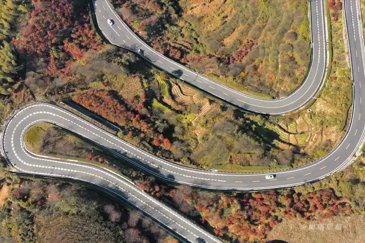 I don't know if it's the location where we took off, or my own technique, but I couldn't capture the grandeur of the winding mountain road. It looked like a plane was flying over here. We set a height limit of 120 meters, so that might be the reason. You can still see the sharp curves, though. It looks steep, but from the car, it wasn't noticeable. Peng Ge said he's a good driver, hahaha, but I'll trust him for now, after all, I can't drive.