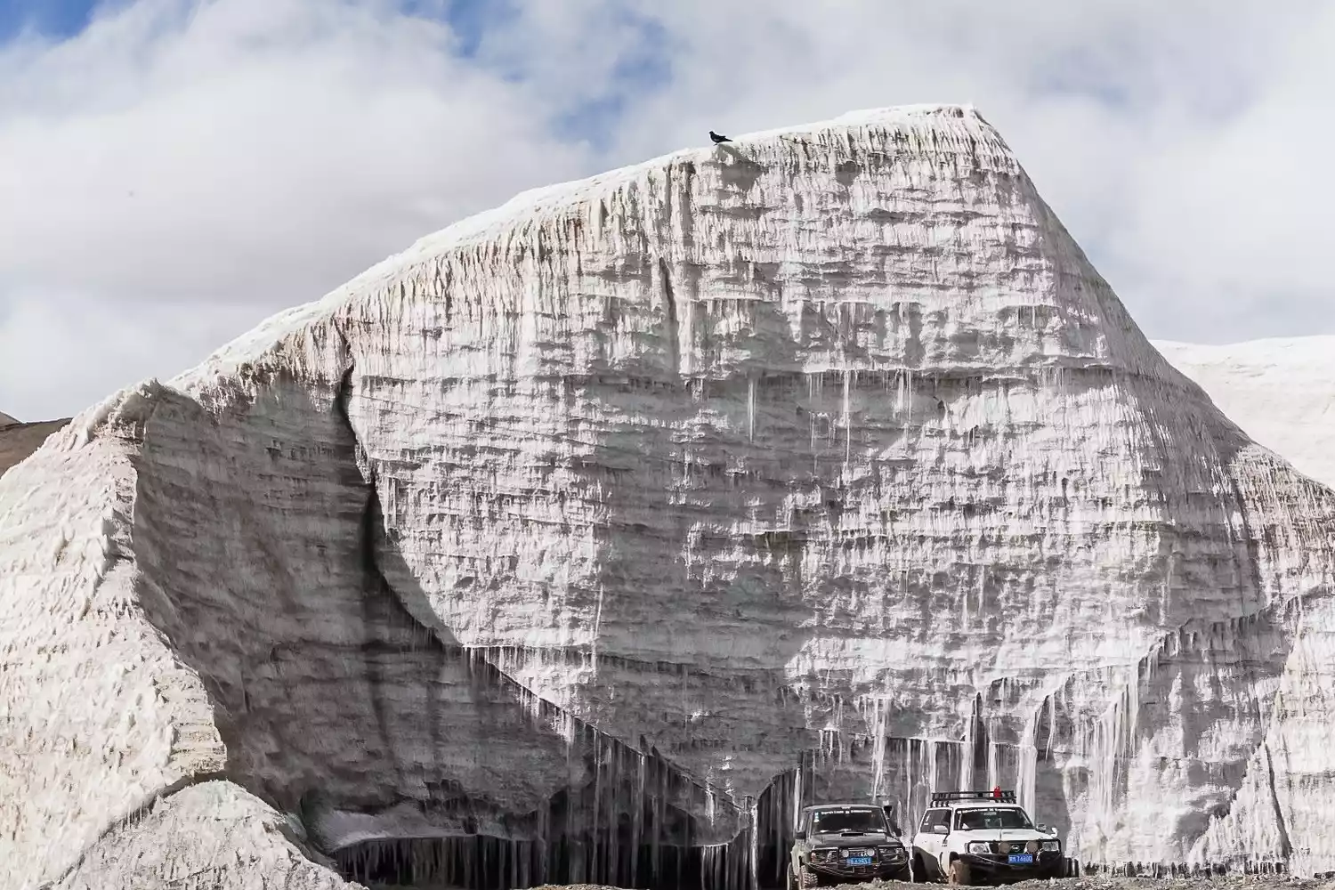 "Puruo" means "silver bowl" in Mongolian, and "Kangri" means "snow mountain" in Tibetan. The Puruo Kangri Ice Field, covering 422 square kilometers, is known as the Third Pole of the World and the third largest glacier in the world after Antarctica and the Arctic. It lies in the core area of the Qiangtang Nature Reserve, and the surrounding area offers numerous wildlife such as herds of Tibetan antelope, wild yaks, and wild donkeys.