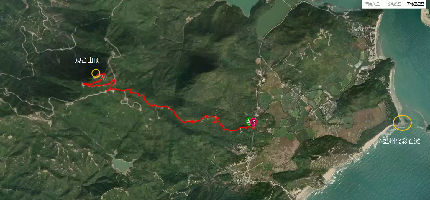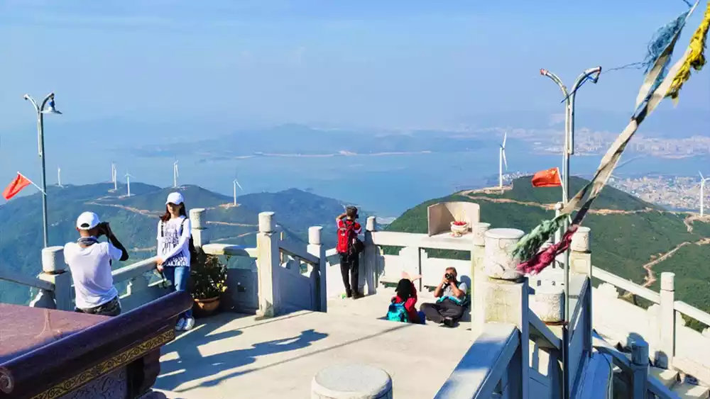There's a small Guanyin Temple on the summit. The main peak, about 640 meters above sea level, isn't particularly high, but it's the highest point in the area. From the summit, you can overlook the wind turbines, the surrounding towns, and the coastline, including Shuangyue Bay and Heipaijiao. Of course, the summit is often covered in clouds and mist. Guanyin Mountain borders Wanzai Crocodile Rock and Yangwu Heipaijiao to the east, the port and Pinghai to the south, Tieyong and Xunliao Bay to the west, and Kaozhouyang to the north.