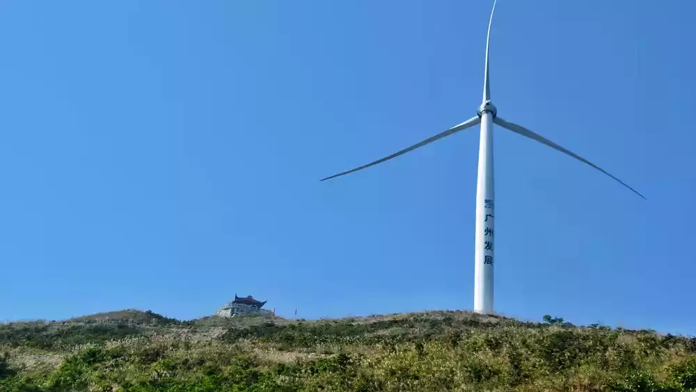 Huizhou Windmill Mountain, also known as Huidong Yangwu Guanyin Mountain, rises majestically amidst the verdant mountains and forests. Its silvery-white windmills add a breathtaking touch to the island's beauty. Raising their immense arms, they bravely guard Yanzhou Island. Guanyin Mountain's windmills are a striking feature of Yanzhou Island, earning it the title of Huizhou's most beautiful windmill mountain. They also provide a steady stream of clean energy, benefiting the people of China. This is truly remarkable!