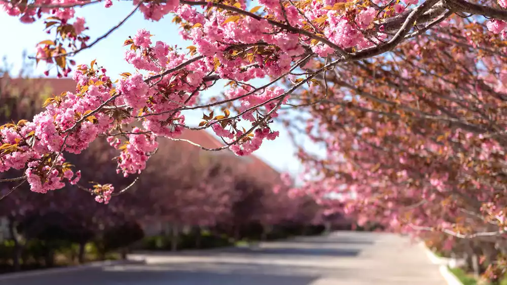 Flowering period: Single cherry blossoms in mid-to-early April, double cherry blossoms in mid-April to early May.
