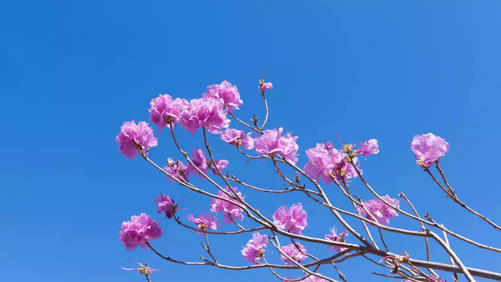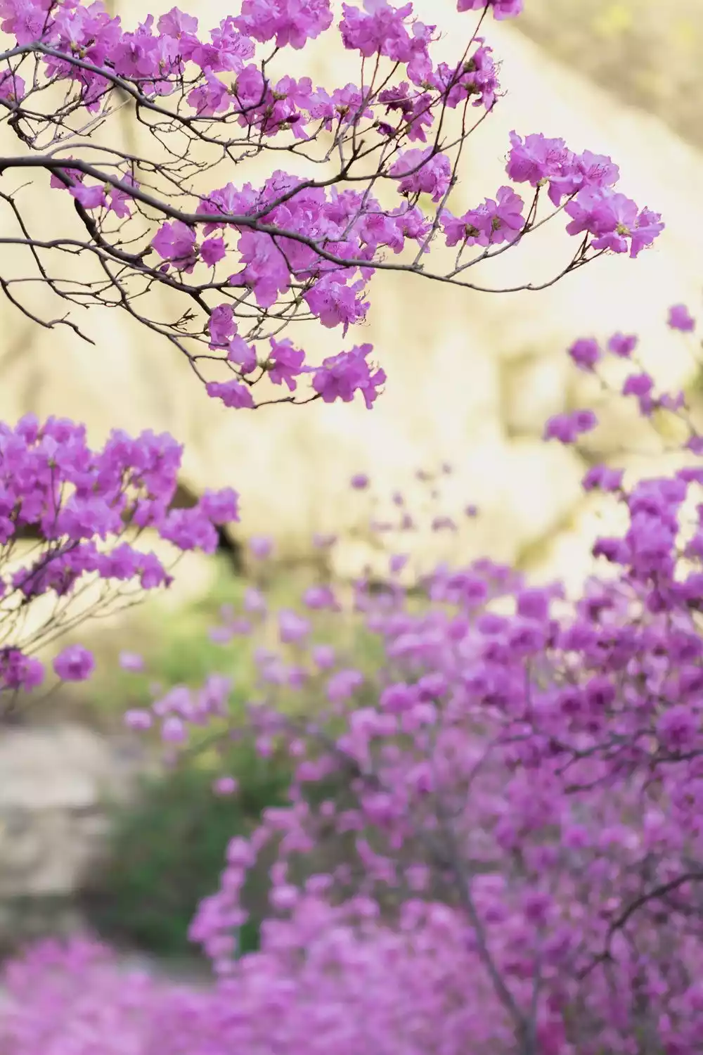 Legend has it that in ancient times, the cuckoo bird would cry day and night, coughing up blood, staining the flowers across the mountains red, hence its name. Azaleas typically bloom in spring, with clusters of 2-6 flowers. Their funnel-shaped corollas come in red, pale pink, apricot red, snow-blue, and white. Their vibrant colors have earned them the nickname "the most beautiful flower." You've seen hundreds of miles of red azaleas, but have you ever seen a sea of purple azaleas? Qingdao boasts a unique azalea sea.