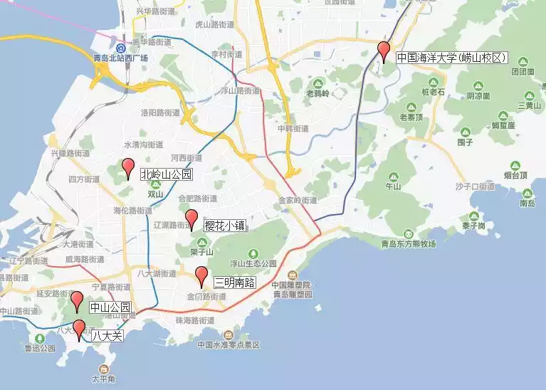 Recommended locations: Zhongshan Park, Badaguan, Ocean University of China (Laoshan Campus), Sanming South Road, Beilingshan Park, Sakura Town