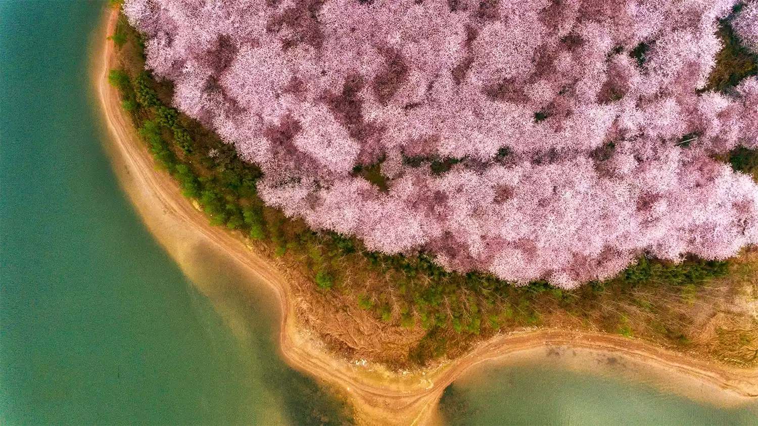 Spanning the cities of Guiyang and Anshun, Pingba Farm sits on the shores of Hongfeng Lake, a pearl of the plateau. It boasts over 6,000 mu (approximately 1,000 acres) of cherry blossoms, home to nearly 700,000 rare cherry trees. These trees are divided into numerous islands by Hongfeng Lake, offering a variety of scenic views. Cycling or hiking are available, but either way, the scenery is truly romantic.