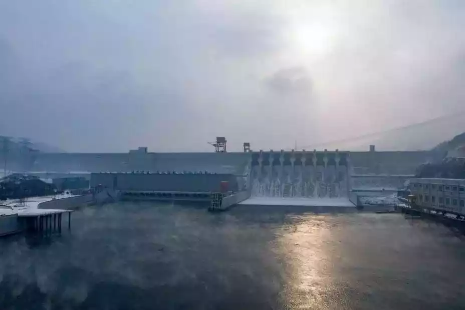 "Water on three sides" refers to the Songhua River that winds in an S shape through Jilin City. Here is my country's first large-scale hydropower station, the Fengman Hydropower Station, the "Mother of China's Hydropower."