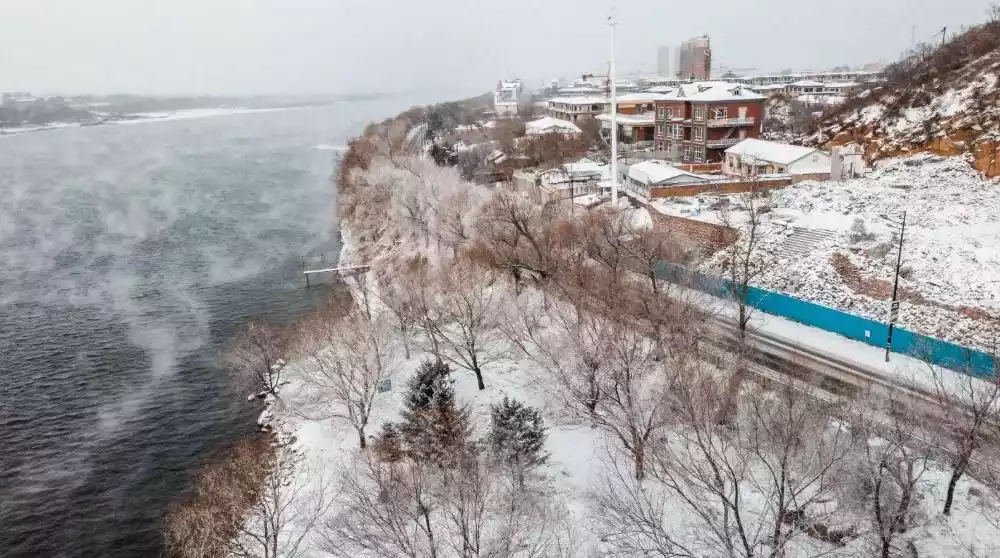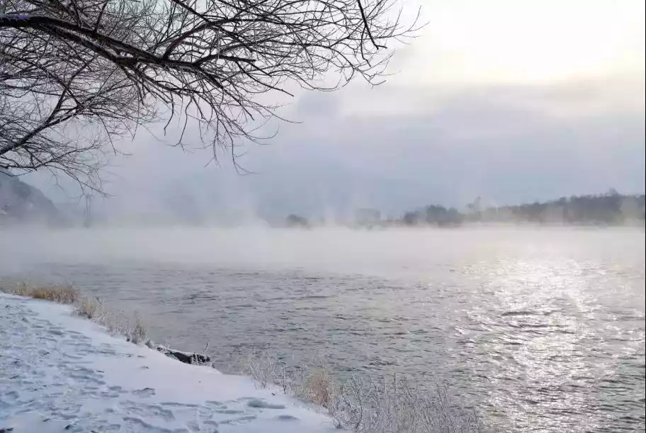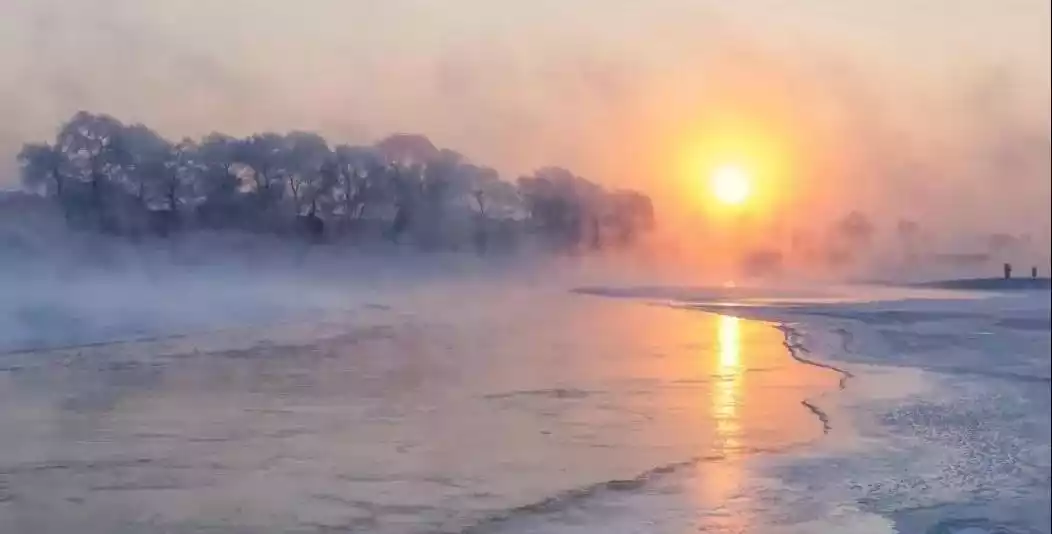 In the depths of winter, the lowest temperature on Wusong Island drops below 20°C, freezing water to the point of freezing. However, the slowly flowing Songhua River never freezes, steam rising from the air and ducks leisurely swimming around, creating a truly magical scene for outsiders.