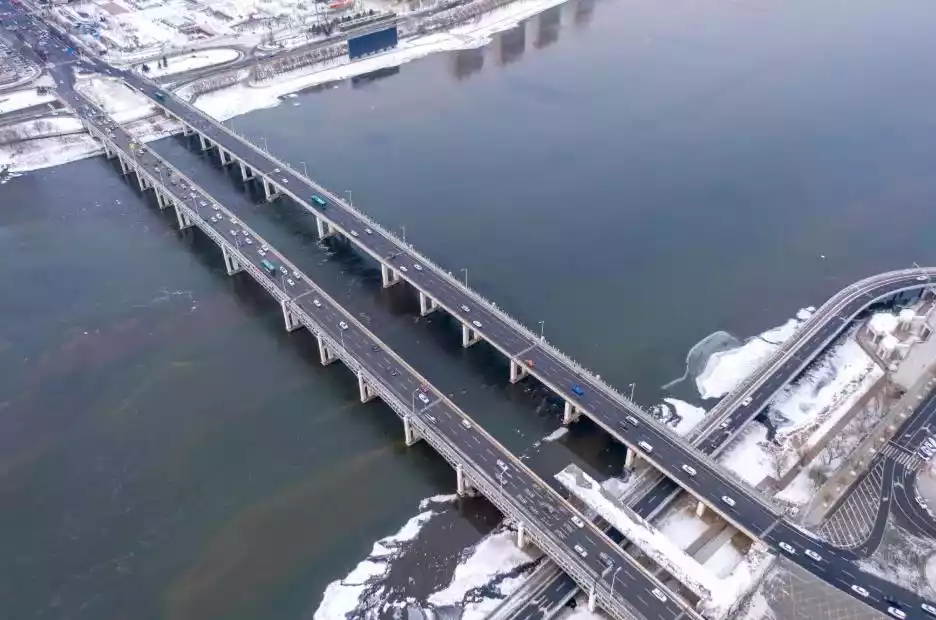The Songhua River Railway Bridge with an industrial style.