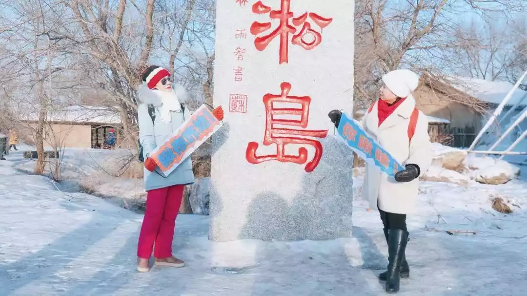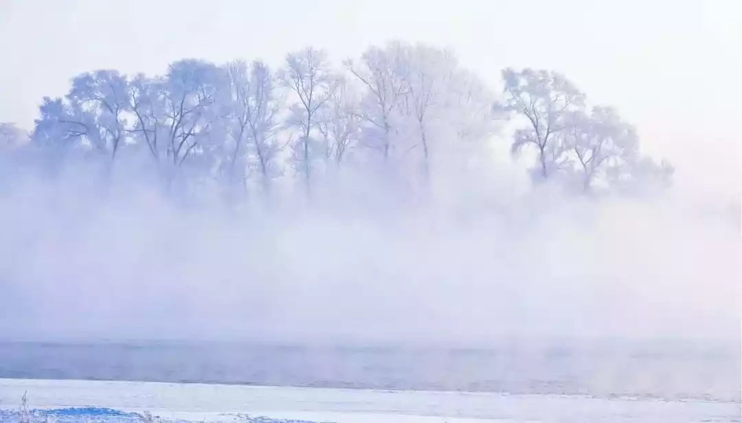 Come to Wusong Island! This natural island on the Songhua River is known as the "Crown of Rime in Jilin City." In winter, mist rises from the unfrozen river water, which meets the cold air and condenses into frost flowers on the trees. The beauty is like stepping into a Nordic fairy tale.