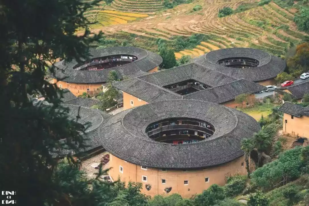 The Hekeng Tulou Group is a masterpiece of southern Fujian Tulou, including 6 square Tulou such as Chaoshui Tower, Yangzhao Tower, Yongsheng Tower, 6 round Tulou such as Yuchang Tower, Chungui Tower, Dongsheng Tower, and the pentagonal Nanxun Tower, totaling 13 Tulou.