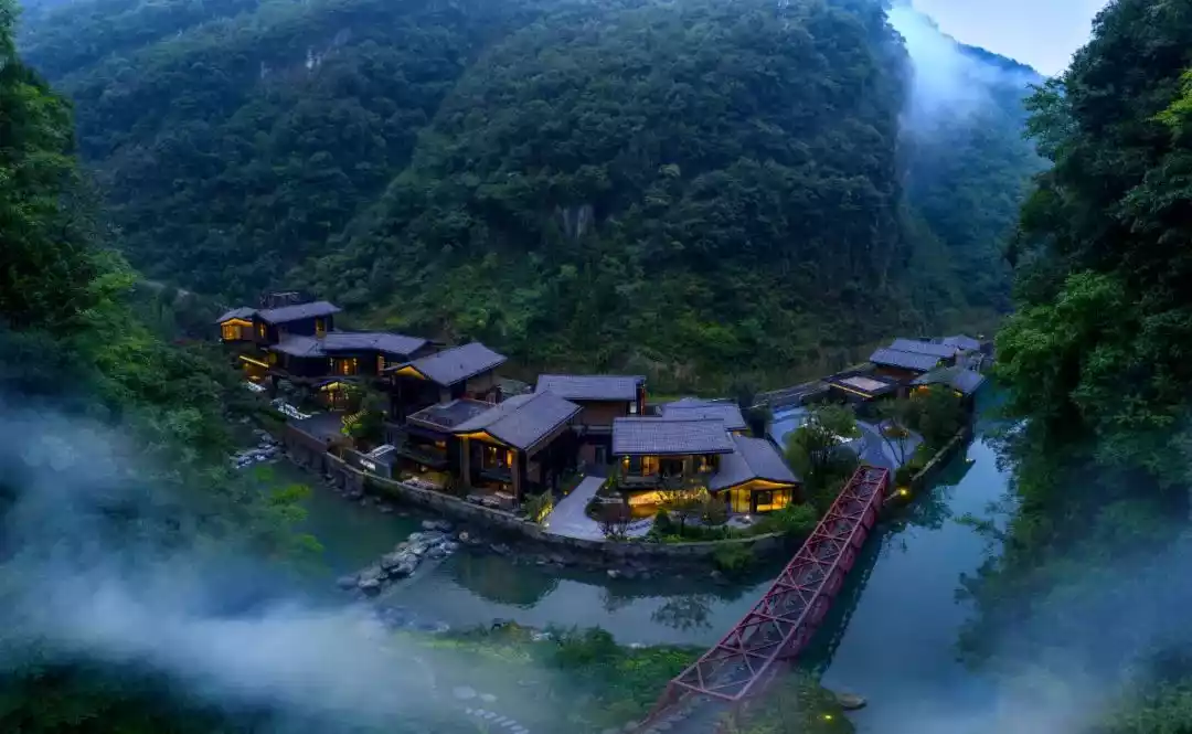 But in fact, deep in the canyons outside Chongqing, there's a hidden gem. This luxurious hotel boasts a mere 18 rooms, nestled in a 6-kilometer-long canyon.