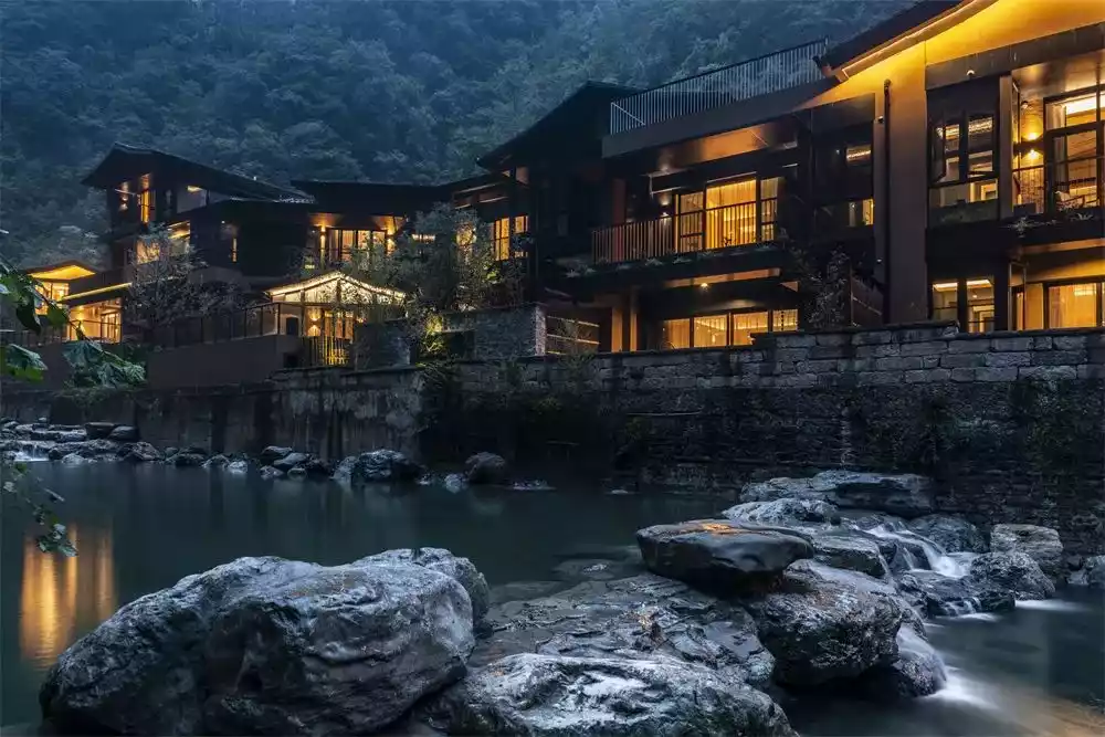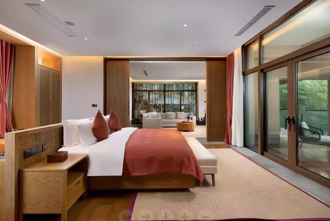 The hotel, with its seven graceful peaks as its backdrop and lush green mountains as its back, creates a tranquil and peaceful atmosphere, like a paradise away from the mundane world. Guests can experience the perfect holiday experience created by this Chinese-style health-themed hotel through multi-faceted interactions and experiences.