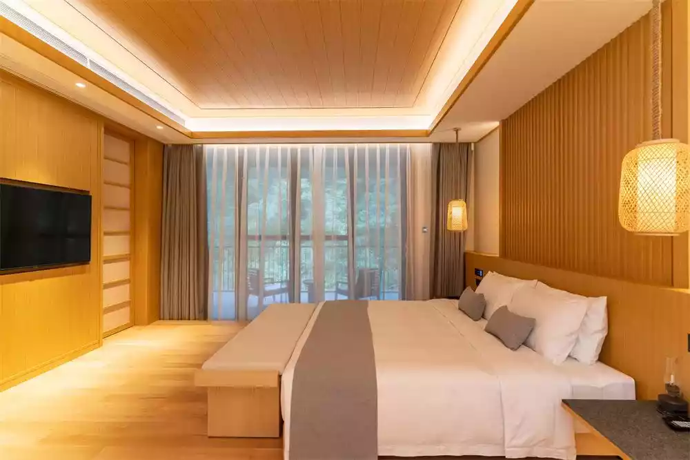 The hotel is located in Tianming Mountain, Ninghai County, known as the "Zhejiang Hot Spring Resort". There is a city in the mountain and a mountain in the city. Surrounded by mountains and forests, Anlan has a "wild" experience with zero distance from nature.