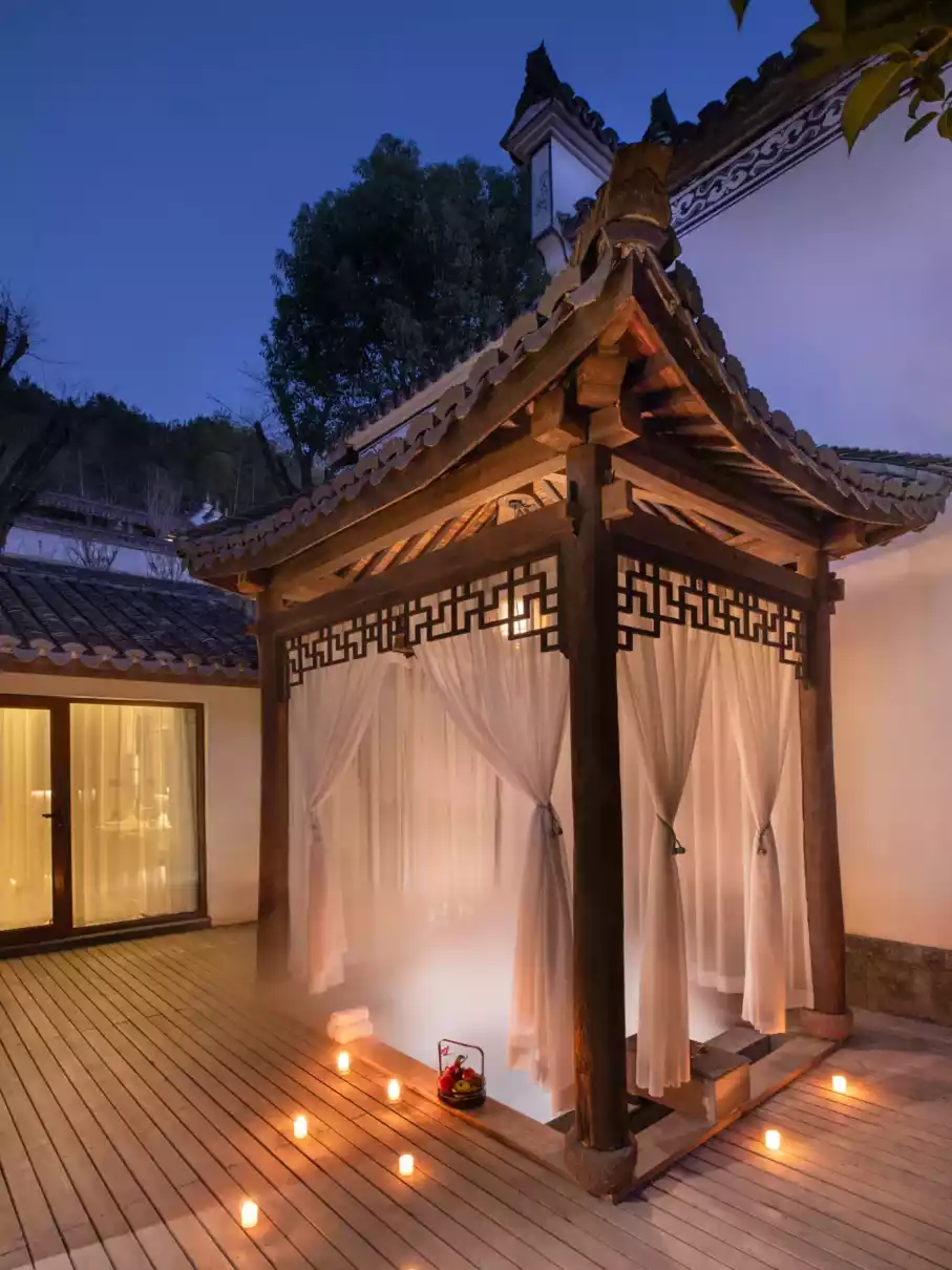 This hotel is a collection of 87 various centuries-old residential buildings. Exquisite old houses with white walls and black tiles can be seen everywhere. The bluestone under the plaque is also carved with extremely delicate and complex patterns. Each old house has witnessed a period of time and represents a rich history.