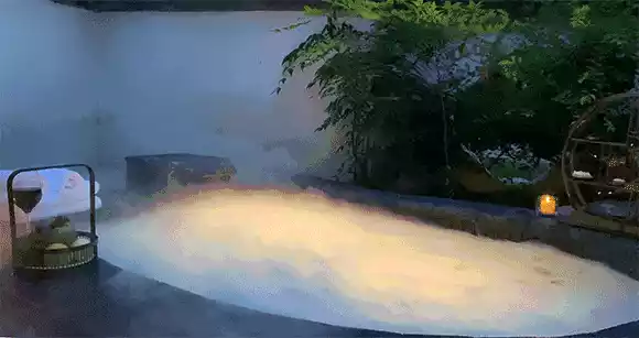 Speaking of private hot springs, You Xiaoxia couldn't help but think of Japan. Sitting next to the large floor-to-ceiling windows, facing Lake Kawaguchi and Mount Fuji, watching the snowflakes falling outside the window, soaking in the hot spring while shaking a glass of red wine, he instantly felt that life was worth it!