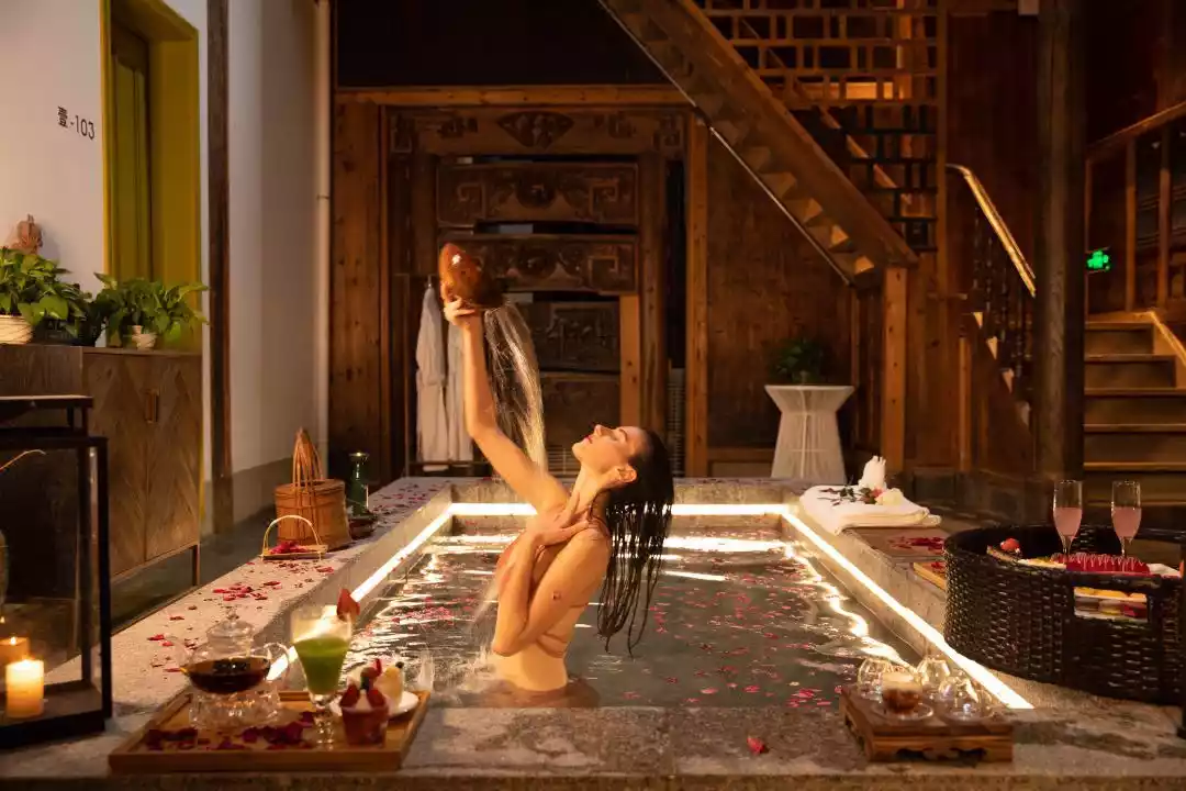 Of course, the biggest highlight must be the private hot spring bath in the room. The hotel has generously introduced hot springs into every guest room, one room, one courtyard, and one hot spring pool, allowing you to fully experience the life interest of a wealthy family in ancient times.