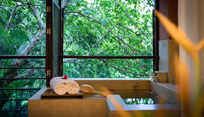 All guest rooms are equipped with private hot spring pools on their balconies. You can enjoy the secluded pristine rainforest, listen to the crisp birdsong, and start a slow-paced vacation in the tropical rainforest.