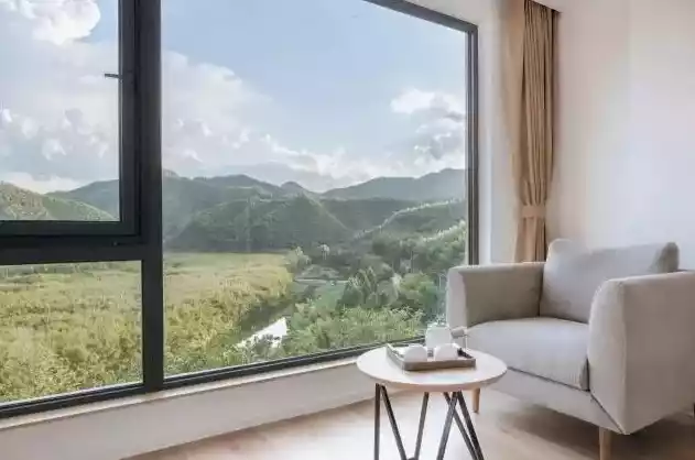 In Anji's Dalezhiye, there is a bamboo sea on one side and mountains and tea fields on the other. All rooms are equipped with large and small terraces, which are decorated with beautiful mountain scenery.