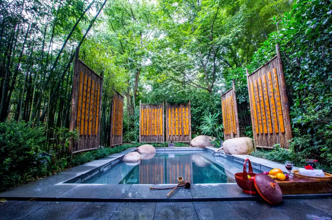 In Liyang, Jiangsu Province, the Yu Shui Hot Springs at Tianmu Lake are not only a national 5A-level scenic spot but also a rare calcium bicarbonate hot spring in East China. The Bamboo Valley Hotel is located in the valley between the Yu Shui Hot Springs and the Nanshan Bamboo Sea.