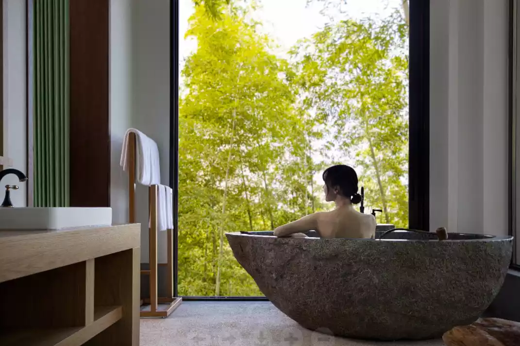 At the same time, Ninghai Anlan has introduced hot springs into the villas. The bathtubs are filled with hot spring water, allowing people to enjoy natural hot springs indoors. With strong privacy, people don't have to worry about the weather outside when soaking in the hot springs, and they can realize their dream of soaking in a "private hot spring" without leaving home.