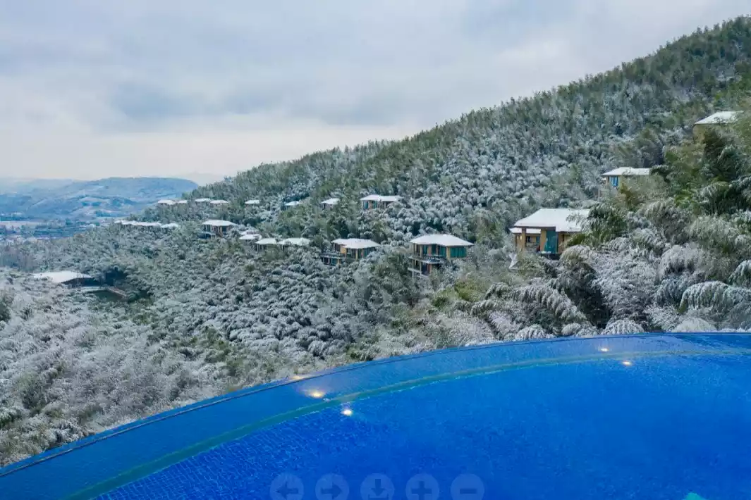 The hotel is surrounded by sacred peaks and canyons. In winter, snowflakes fall, and every scene and object in the ice and snow kingdom seems to paint a picture of a "paradise on earth".
