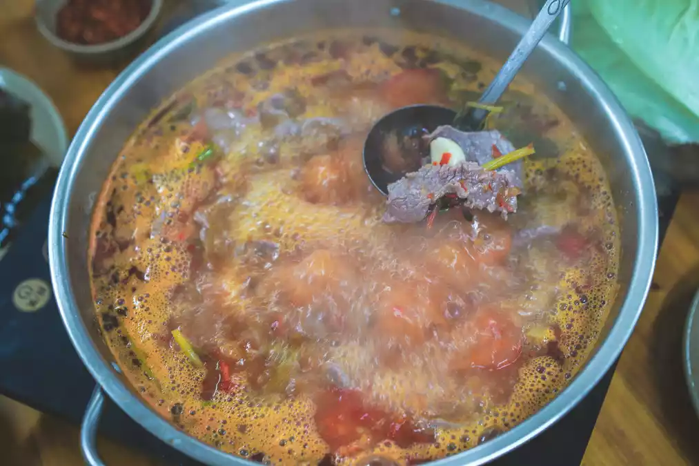 When it comes to Guizhou specialties, beef in sour soup is a must-try! There are two types of Guizhou sour soup: white sour soup, made from fermented rice soup, and red sour soup, made from fermented cherry tomatoes and rice soup.