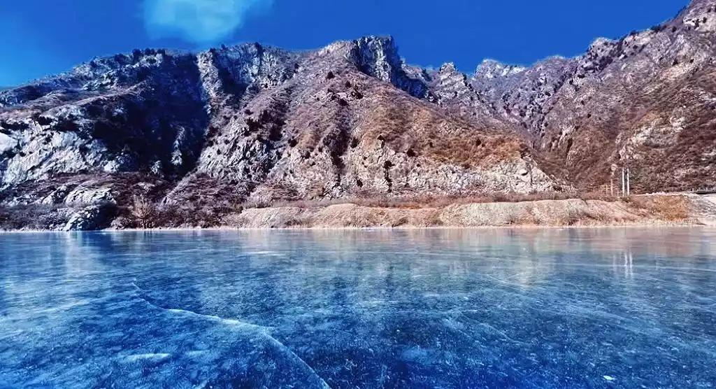 From mid-January to February, blue ice forms, shining brightly under the holy sunlight, stretching for more than ten kilometers. Walking on the ice is like walking into a blue fairy tale world.