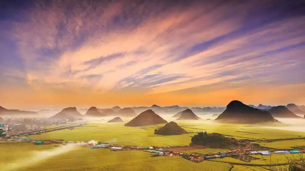 When talking about Luoping, how can we forget the Jinji Peak Cluster? The karst peaks are interspersed among the rapeseed fields, and the different shades of gold echo each other, as if bringing the dreamlike spring pastoral scenery into reality.