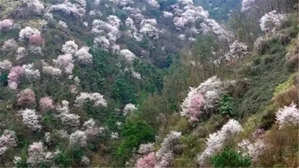 This small mountain village has a history of flower planting for more than a thousand years. The village houses are built in a row, with white walls and black tiles, and are staggered in height. In February, with the flowers all over the mountains, it is as beautiful as a painting.