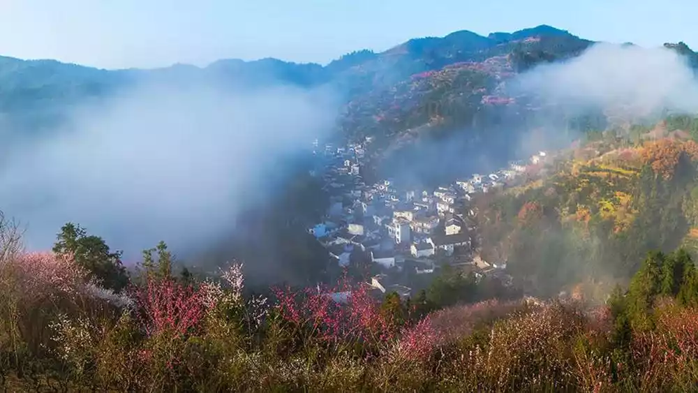 It was once recommended by CCTV for its thousands of acres of plum blossoms. Every spring, countless tourists come here just to see the beautiful scenery of the plum blossoms in full bloom. This is the Flower-Making Fishing Village in She County, Anhui Province.