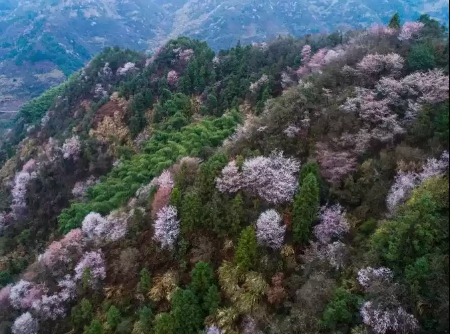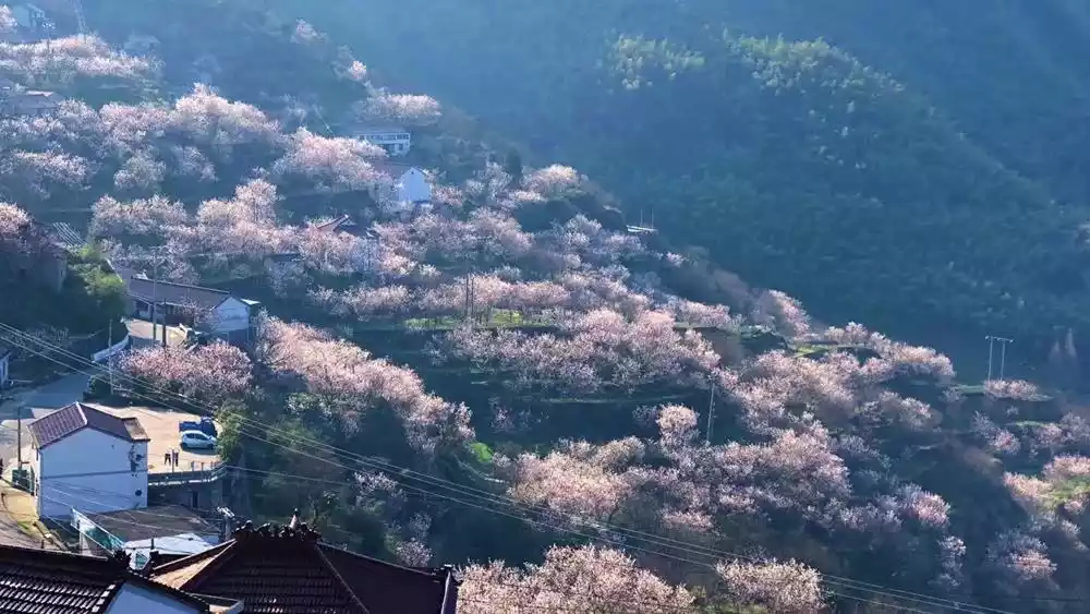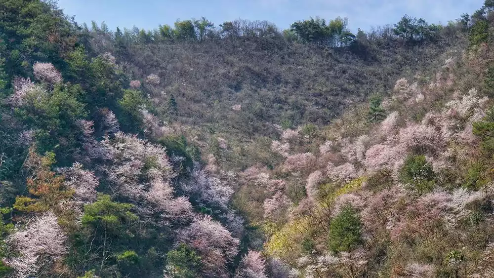 The flowering period of Chun'an Yoshino Mountain is around February to March every year, and this is the time when the cherry blossoms are in full bloom.