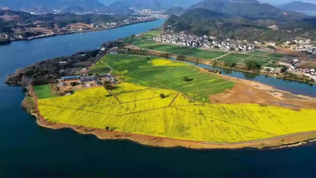 In Xiaya Town, a 40-minute drive from Chun'an Jinye Mountain, 500 acres of rapeseed flowers have begun to bloom. The rapeseed varieties here are cold-resistant, and large fields of rapeseed flowers bloom in early spring, creating a spring scene full of hope.