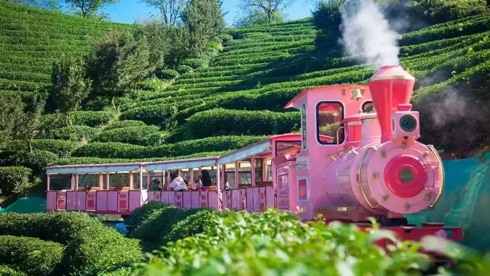 In addition to the beautiful scenery, there is also the internet-famous cherry blossom train running through the tea mountains. Just holding your ticket, standing on the platform, and taking your loved one on a pink train is so romantic!