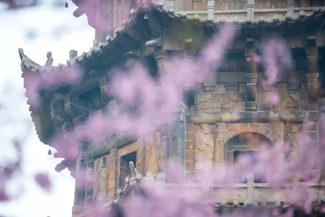 This year, Kaiyuan Temple also painted a new "Forbidden City Red" wall. Although there are not many blooming cherry blossoms, they complement the ancient buildings, red walls, and pagodas around the temple, attracting many young ladies to check in and take pictures.