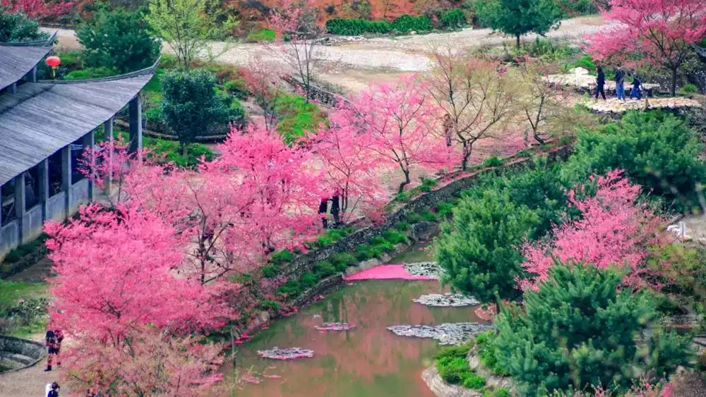 Sakura Valley is Guangdong's largest and most diverse cherry blossom viewing destination. It's also Guangdong's first comprehensive cherry blossom-themed agricultural tourism zone. Over 20 varieties of cherry blossoms are planted within the area, with Yaezakura and Kanhizakura being the most common.