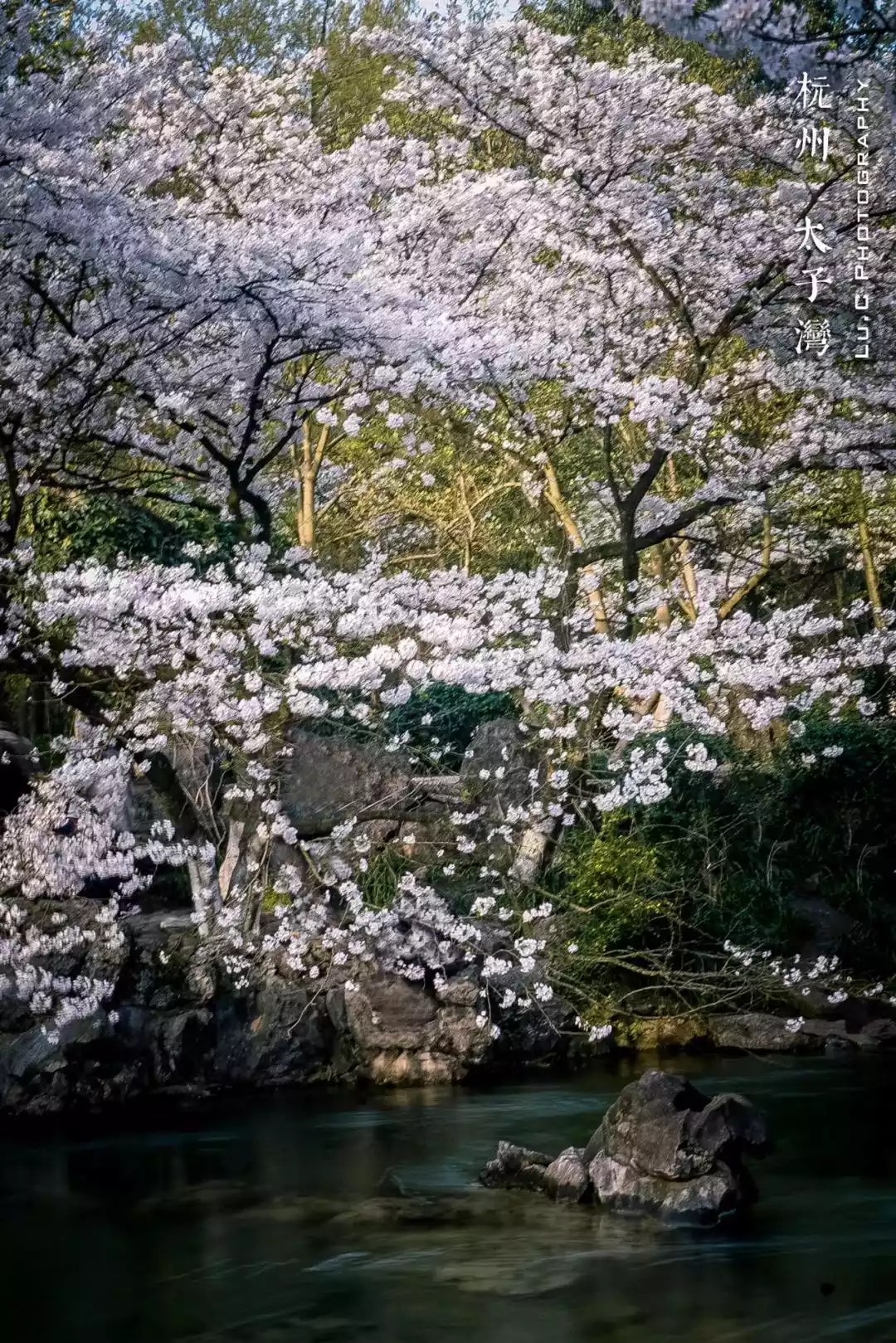 Prince Bay Park is a long-established cherry blossom viewing spot in Hangzhou. Every spring, the first cherry blossoms to bloom along West Lake are those near the Zhulianbi Waterfall in Prince Bay.