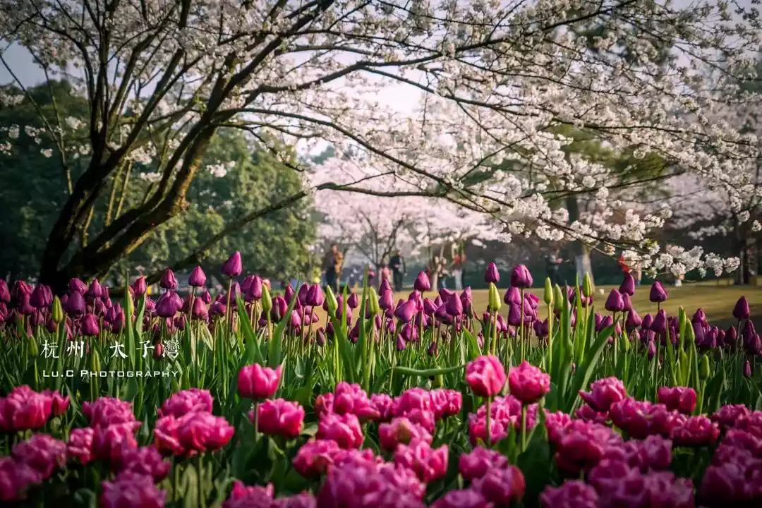 Mountain cherry blossoms, early cherry blossoms, late cherry blossoms... come one after another. Looking up, you can see cherry blossoms, and looking down, you can see tulips. They are the symbols of spring in Prince Bay.