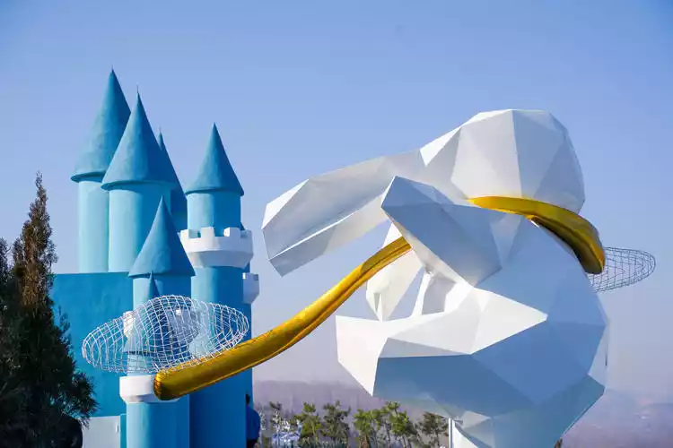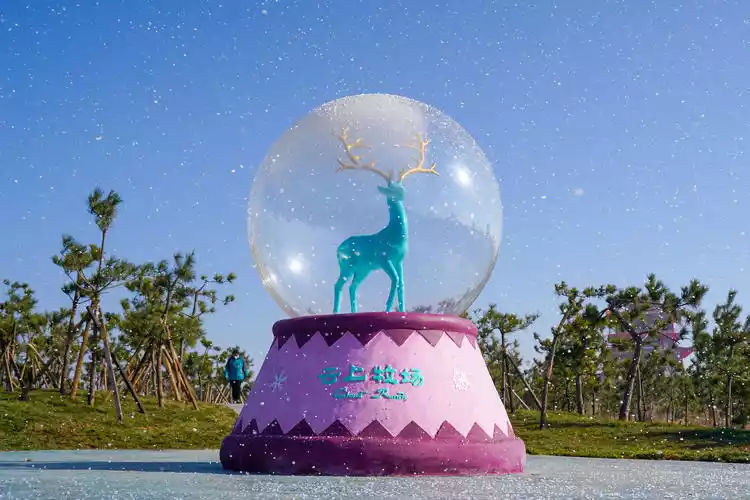 Further inside, you'll find the winter-only "Frozen" attraction. Southerners will find it both novel and delightful. The view is a magnificent expanse of royal blue. Though man-made, the scenery captivates you with its endearing charm. Walking through the corridor, you'll find a giant crystal ball housing a charming elk. Atop the slide stands a sculpture resembling a bear and a rabbit. Each of these moments will be a source of joy.