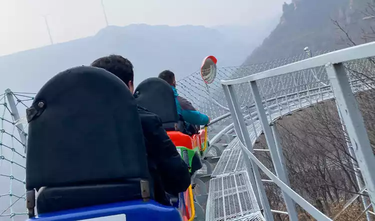 Another special place is the Sanquan Lake glass slide. It adopts a double-row design for two people, with a total length of 280 meters and a drop of 108 meters. It winds around natural attractions and trees. The bottom and both sides are made of transparent glass. The whole sliding process takes about 6 minutes. It is one of the projects for tourists to enjoy in the scenic area, and you can enjoy the exciting screams.