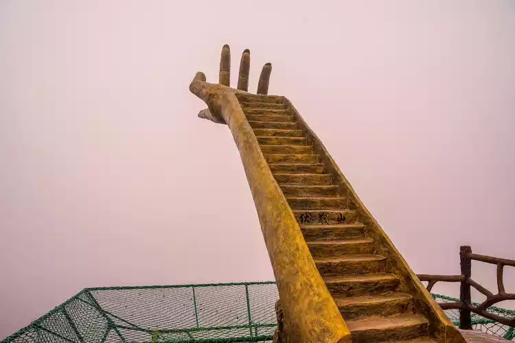 If you are a brave person, you may as well go up and give it a try. From a high vantage point, you will have a real feeling of "looking down on all the mountains" and experience the thrill of "walking in the sky".