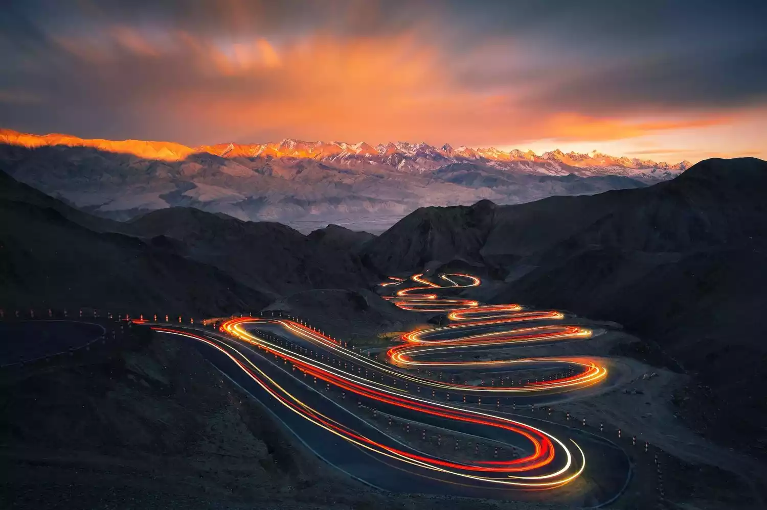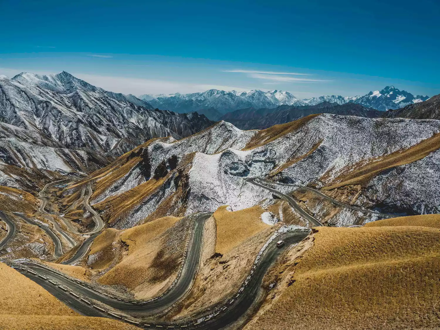 On the Pamir Plateau, great workers built another road that crossed the natural barrier: the Panlong Ancient Road. The continuous hairpin turns make every experienced driver tremble, but it has also become a beautiful landscape.