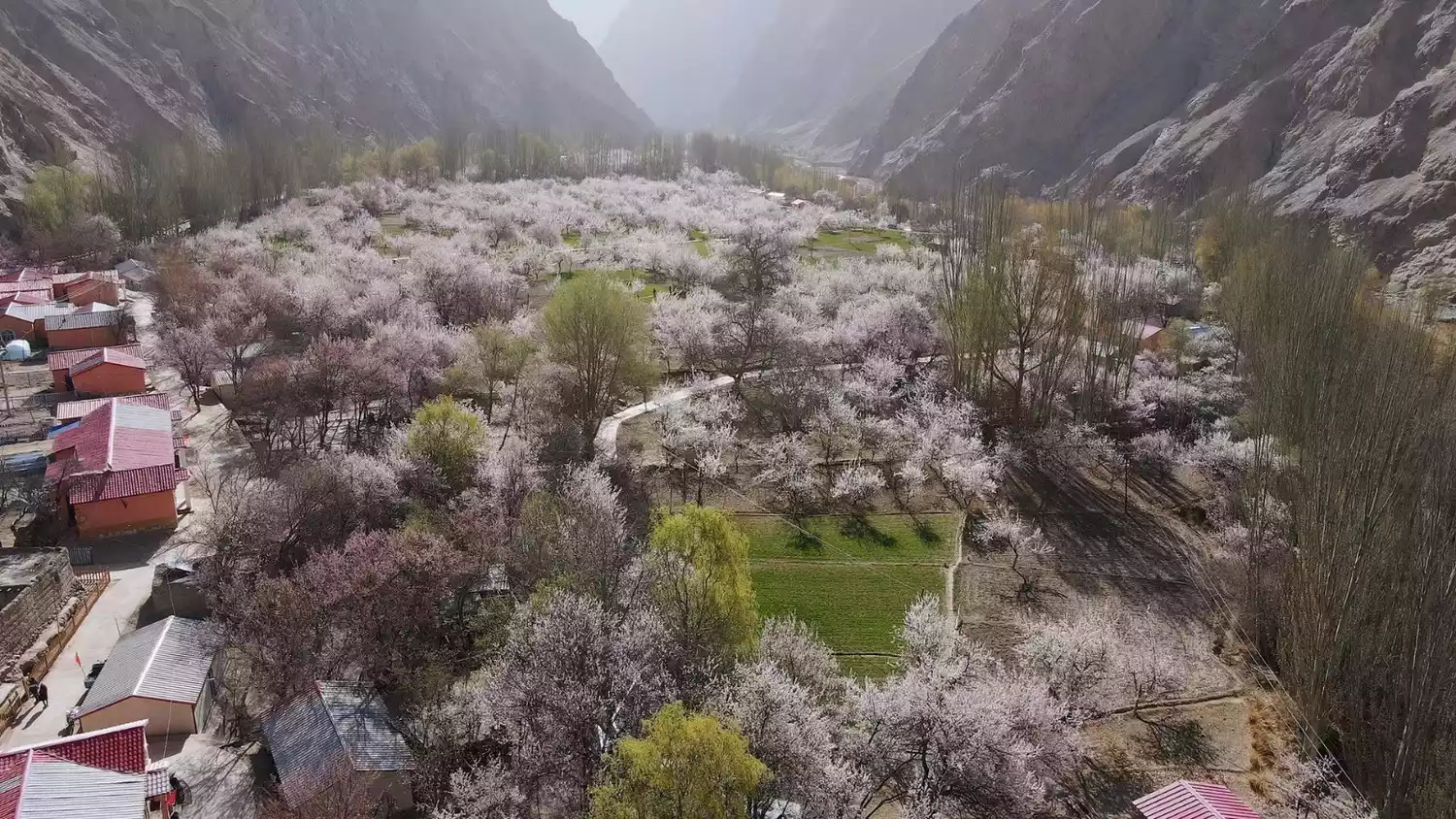 The poet's few words have sparked debate over the title of "Apricot Blossom Village" in many places today. However, the apricot blossoms of the Pamir Plateau are undoubtedly the most deserving of this title. The Pamir Plateau is renowned for its cold, bleak, and desolate scenery. Yet, spring in Xinjiang begins here. Every year at the end of March, the long-dormant century-old apricot trees burst into bloom, transforming the nearly 300-kilometer-long Tashkurgan River Valley into a spectacular corridor of apricot blossoms.