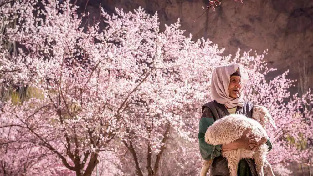 In their struggle against the harsh elements of nature, they nurture generation after generation of life, like the apricot blossoms that bloom across the valleys of the Pamir Plateau, or like eagles soaring through the blue skies of the Pamirs. Every year in late March, the ancient apricot trees along the Tasha Trail in the Wakhan Corridor, along the Yarkand River, burst into bloom. This is Xinjiang's earliest spring, a pristine paradise.
