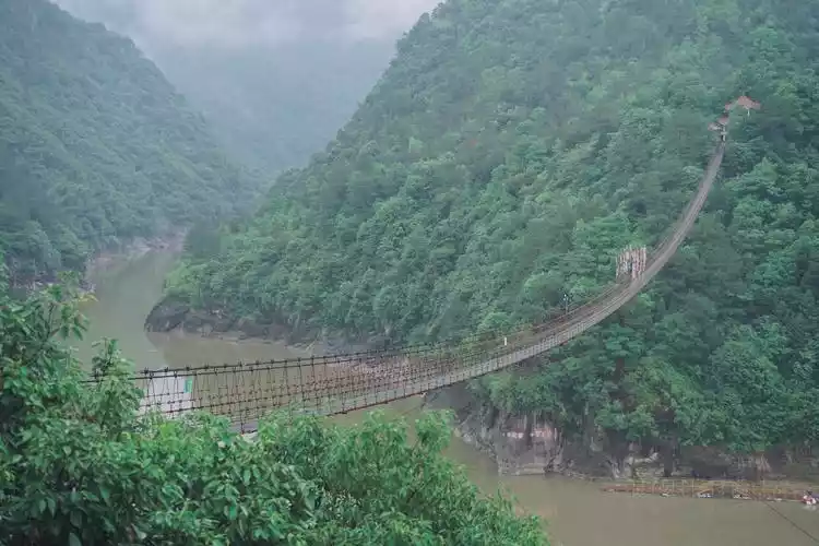 When the weather is fine, any photo taken here will be a masterpiece. Standing on the suspension bridge, there is a clear water system flowing under your feet.