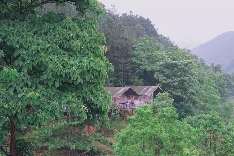 Within the scenic area lies an exquisite mountaintop treehouse tent homestay, Shouxingxiu. Inspired by the twelve zodiac signs, the property comprises twelve mountaintop treehouse tents, each with its own private terrace offering breathtaking mountain and water views. In the morning, admire the mountain mist, and at night, gaze at the starry sky.