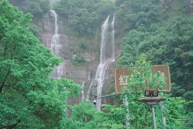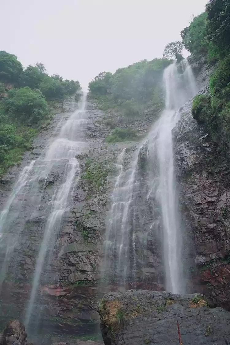 As soon as the car exited the Hongyan Tunnel, we heard the unstoppable roar of rushing water. Turning, we saw two waterfalls cascading down from a cliff dozens of meters high, converging into a single stream. The powerful torrent cascaded down from the heights, crashing violently against the cliffs and rocks, sending up countless splashes. Vapor permeated the surrounding rock walls, creating a hazy, almost fairy-like atmosphere.