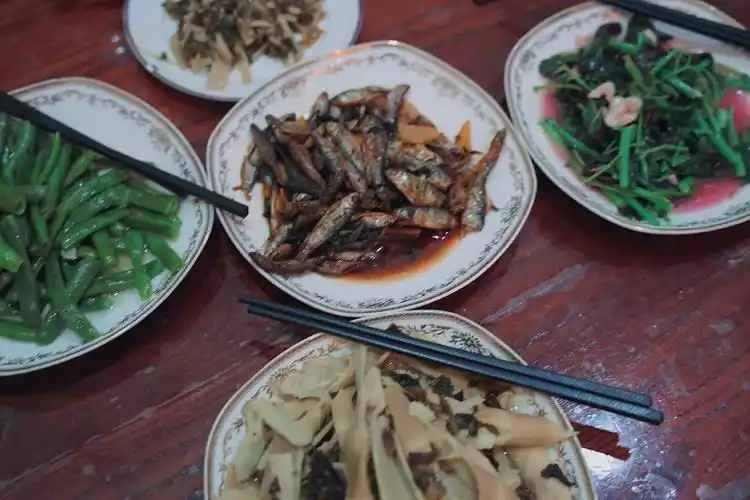 The most memorable experience was a home-cooked meal at a local guesthouse in the village: small dried fish stir-fried with seasonings turned out crispy, fragrant, and flavorful, so delicious you could eat even the bones. Dried bamboo shoots, homegrown amaranth, green beans, and pickled vegetables made up a simple, mountain-climbing family feast.
