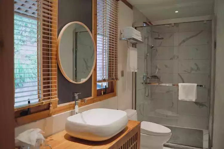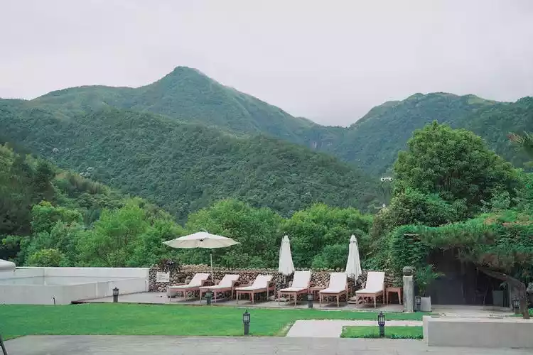 Baihe Villa is nestled against Feiyun Lake, nestled in the heart of a mountain valley. The lake's abundant waters separate the mountains on either side, forming a winding, emerald green ribbon through the canyon's center. Riding a bamboo raft downstream, the mountains recede into the distance, their peaks still shrouded in morning mist. It feels like being in the Three Gorges of the Yangtze River, but with a less imposing presence and a more picturesque beauty.